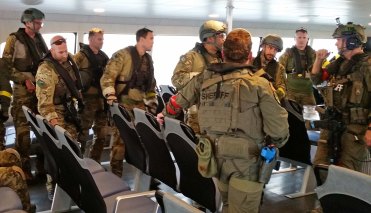 Taking part in the exercise were the King County Sheriff and U.S. Customs and Border Patrol; SWAT teams from King County, City of Seattle, FBI, and the Royal Canadian Mounted Police; and Seattle Fire medics.