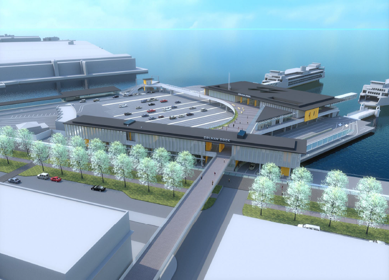 King County Water Taxi riders can look forward to an upgraded facility at Colman Dock in downtown Seattle. As part of the upcoming Colman Dock Project where Washington State Ferries (WSF), the Federal Highway Administration, and the Federal Transit Administration are replacing the aging and seismically vulnerable components of the current WSF terminal and facility, King County will be building a new home on the south side with elevators and a pedestrian bridge for connectivity to the new WSF terminal, terminal amenities, and access to the Marion Street Pedestrian Bridge.