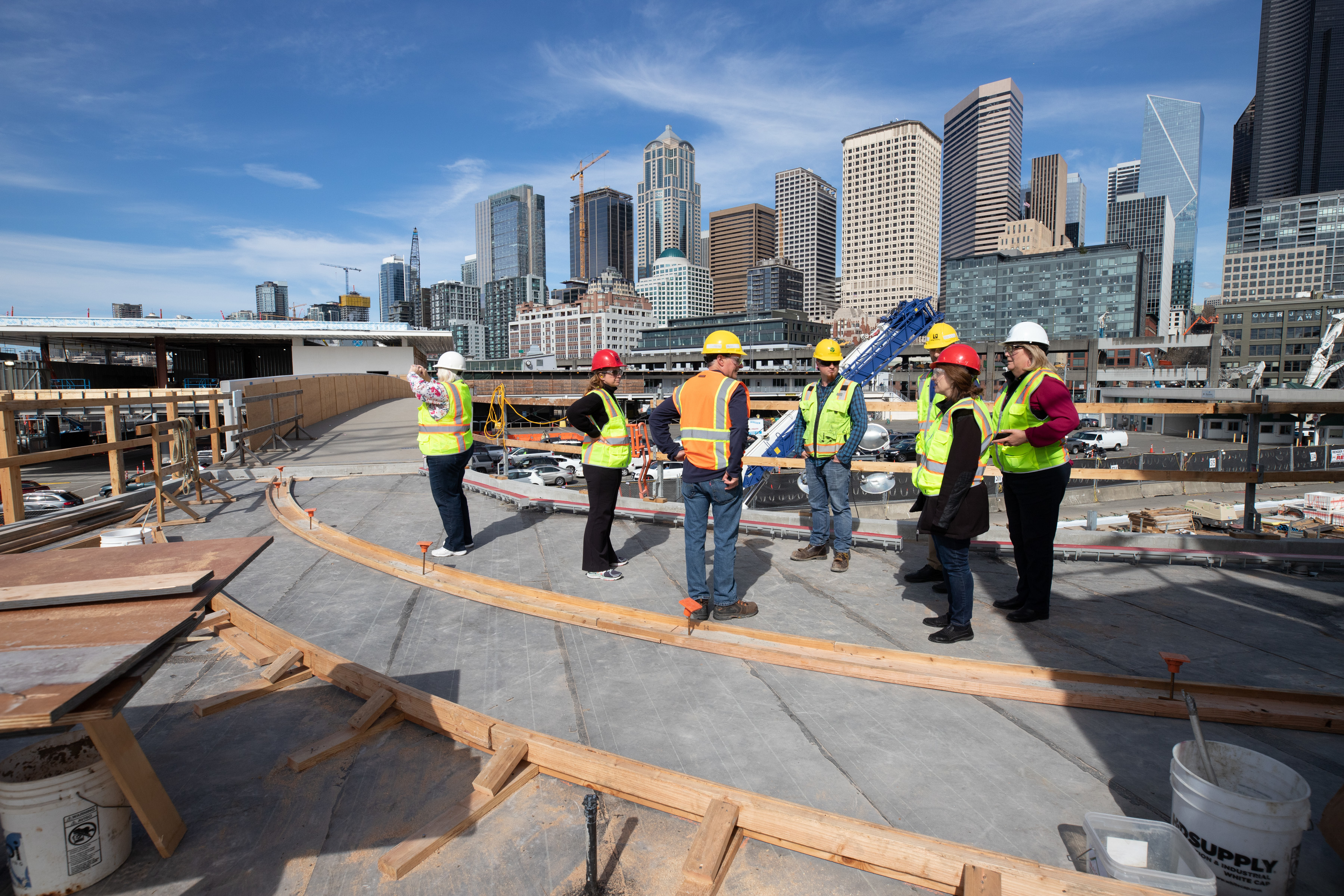 We recently gave a sneak peek on our construction progress to news reporters and wanted to share the eye-candy with you also. The new passenger facility at Colman Dock is really taking shape and looking amazing!
